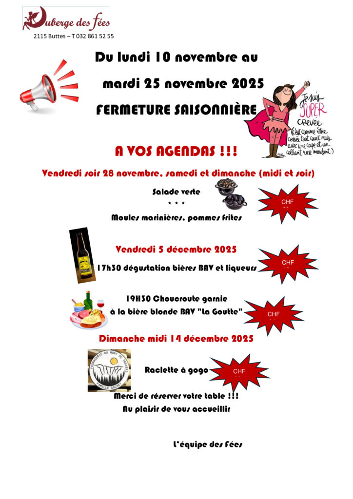 Prenez note de nos événements ci-après et réservez vos places dès maintenant !!