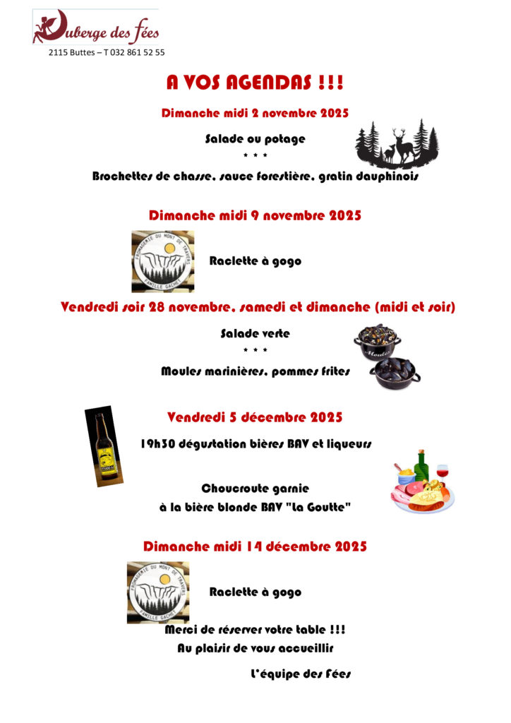 Horaires de l'Auberge