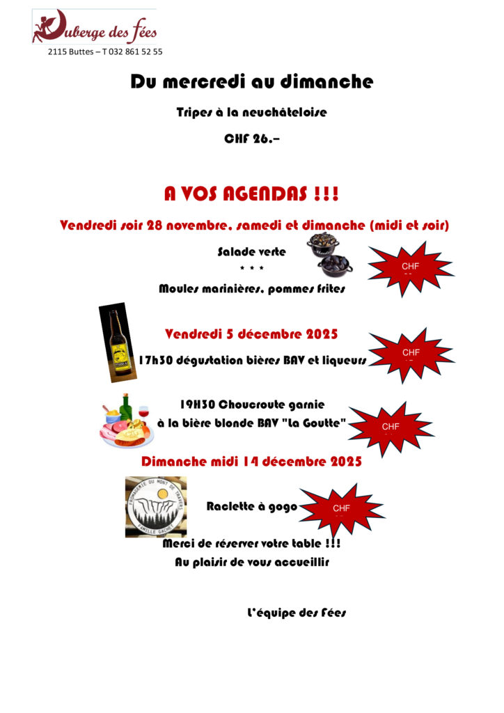 Prenez note de nos événements ci-après et réservez vos places dès maintenant !!
